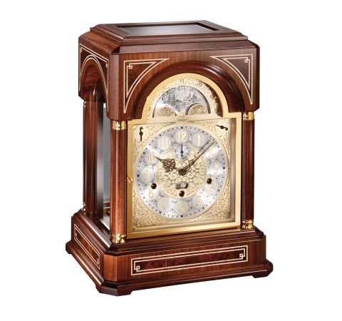 Đây thực sự là một viên ngọc trong các loại đồng hồ để bàn, là sự kết hợp hoàn hảo nghề thủ công của các thợ lành nghề trong sản xuất đồng hồ của Đức. Vỏ được làm bằng gỗ Óc chó khảm ngọc trai. Đặc tính kỹ thuật: - Vật liệu máy và các phụ kiện được mạ vàng. -Ký hiệu máy: REC-03 - Loại gông: 9 bát chuông, 11bạc rubi - Số bản nhạc : Có 3 bản nhạc ( khúc nhạc chiều trong G-major “A little Night Music” (KV 525, được viết năm 1787), Aria của Papageno “The Bird Hunter I Am”,một phần của vở Opera “Tiếng sáo diệu kỳ) -Chỉ sản xuất 250 chiếc trên toàn thế giới. -Có chế độ tự động tắt chuông về đêm từ 10PM-7.15AM. Giao hàng miễn phí trên toàn quốc Bảo hành : 24 tháng *Cung cấp và bảo hành độc quyền các loại đồng hồ KIENINGER, HOWARD MILLER,RIDGEWAY,HERMLE tại Việt Nam * Còn hàng. ( Giá thỏa thuận )